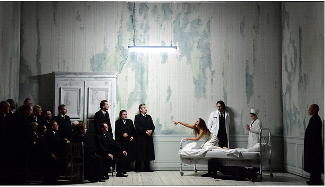 Eine zweite Lucia aus dem Ballettensemble (grossartig: Mirjam Karvat) tanzt sich die Verzweiflung aus der Seele, während die echte Lucia ihr Bett in der schon vorweggenommenen Klapse praktisch nicht mehr verlässt. Obwohl in sich stimmig, zerstört Py mit seinen unaufhörlichen Unheilsboten in Form von Schattendämonen, Skeletten, Totenköpfen und vor allem der Vorwegnahme des Wahnsinns vollends den Spannungsbogen vom fröhlichen verliebten Mädchen bis zur verzweifelten Frau, die in ihrer Aussichtlosigkeit langsam und zusehends dem Wahnsinn verfällt.