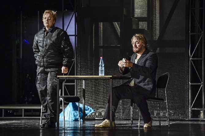 Diese Inszenierung von Regisseur Robert LEHMEIER verursachte einiges Kopfschütteln, ebenso auch Kopfschmerzen, und stieß auf Unverständnis einiger Premierenbesucher. Wo sich allein die Frage stellt: Was wollte der Regisseur mit dieser abstrusen Regiearbeit uns überhaupt verdeutlichen? Versucht uns hier Robert Lehmeier doch darüber aufzuklären, was die neue Gesellschaftsordnung im Grunde genommen bedeutet, wo Konzerne die keinerlei demokratischer Kontrolle mehr unterliegen, hier die heutige Werte – Gemeinschaft doch sehr infrage gestellt wird, und wo jedes einzelne Individuum unterdrückt, ebenso auch in einer Zeit nach der Wende. Obwohl bedrohlich und politisch angehaucht, so blieb auch dieses Thematik in dieser Inszenierung unbeantwortet. Also was sollte diese Inszenierung wirklich bezwecken,wo in erster Linie die Protagonisten auszusagen in einem leeren Raum des Unbehagens standen, und sich hier künstlerisch wohl kaum entfalten, geschweige denn der charakteristischen Rollenprofile entsprechend, sich darstellerisch sich hätten profilieren können. Weil bedauerlicherweise dieses so großartige Werk szenisch derart verzerrt, doch eher oberflächlicher Bedeutung, derart zerstört wurde. „Gott, welch’ Dunkel hier“ – wo Beethoven sich hier wahrlich im Grabe umdrehen würde!