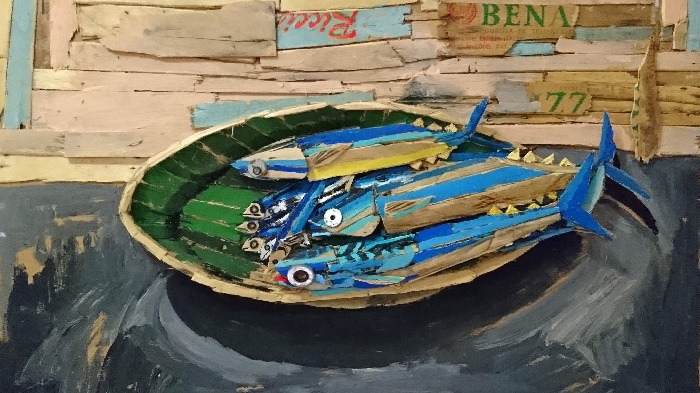 Ausstellung Mediterraneo im Italienischen Konsulat von Köln. Dreidimensionaler Fischteller von Nunzio Fucci. Foto: Andrea Matzker