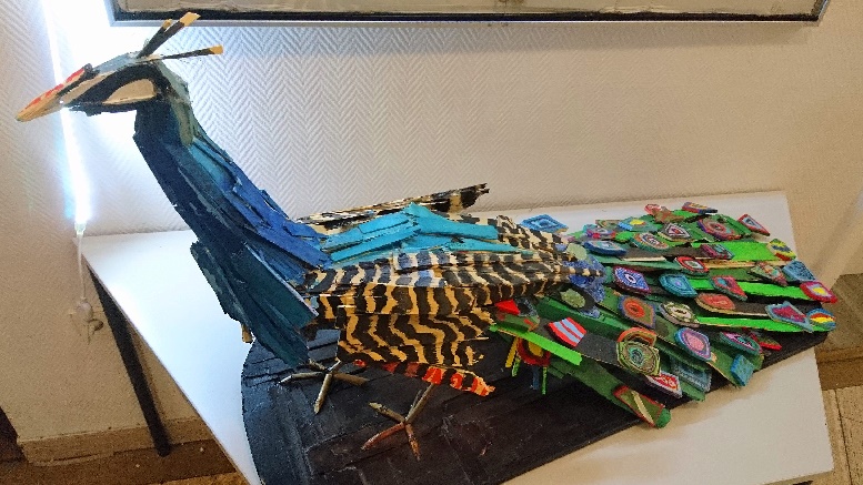 Ausstellung Mediterraneo mit überdimensional großem Pfau von Nunzio Fucci. Foto: Andrea Matzker