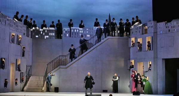 Da ist man bei der nicht sonderlich geglückten Inszenierung von Laurent Pelly, der offenbar der Meinung war, die Belle Epoque-Kostüme (wie immer von ihm selbst entworfen) würden in einer „schlichten“ Dekoration am besten zur Geltung kommen. Aber was Chantal Thomas (der wir auch die optisch so öde Wiener „Lucia“ verdanken, wenn man es so formulieren will) auf die Bühne brachte, sind vorwiegend reizlose, glatte Beton-Konstruktionen. Für die Szene, wo Manon ihren Des Grieux als Abbé aufsucht, hat man hingegen – mit Riesensäulen und eine Unmenge Stühlen – einen ganzen, sinnlosen, aufwendigen Kirchenraum hingestellt. Und in dieser Welt spielt sich szenisch nur Routine ab.