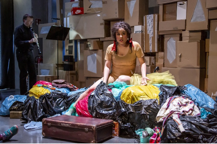 Wie man Musiktheater für Kinder von 3 bis 6 Jahren passend gestaltet, hat Lavinia Schuchert (Kostüm: Kerstin Hägele) mit Hilfe von Kannen, Dosen, Kleidern und Hosen passend in Szene gesetzt. Auf dem Müll liegt die Puppe Lollo. Jemand hat sie weggeschmissen, aber Lollo will natürlich kein unbrauchbares Gerümpel sein. Und auf diesem Müllberg findet sie dann anderes kaputtes Spielzeug. Die Kinder werden von der wandlungsfähigen Sängerin Diatra Zulaika zusammen mit Stefanie Faber (Klarinette/Bassklarinette) klangfarblich reizvoll aufgefordert, mit den vorhandenen Utensilien ein großes Orchester zu bilden, was gut gelingt. Dadurch erhält diese Aufführung ungeahnte Lebendigkeit.