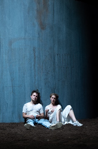 In der suggestiven Regie von Peter Sanyo (Bühne: Daina Kasperowitsch; Kostüme: Svea Schiemann; Komposition: PC Nackt) scheinen die einzelnen Szenen zu springen, die Geschichte wird rückwärts erzählt, die Sprache ist minimalistisch genau. „Ich knie am Grab meines Sohnes und ich klage um ihn…„, bemerkt die Frau. Der Sohn stellt als Toter fest: „Ich bin keines natürlichen Todes gestorben.“ Nach und nach erfährt man, dass er sich umgebracht hat. Schon zuvor hat er seiner Mutter immer wieder angekündigt, dass er sich das Leben nehmen will. Man erfährt, dass er sich mit einem blauen Rasierer geritzt hat und dass er dann in der Badewanne gestorben ist.