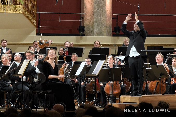 Eröffnet wurde die 120. Saison der Symphoniker aber mit einem Auftragswerk, welches an junge Talente ausgeschrieben war. Aus 250 Einsendungen wählte die hochkarätige Jury die 1989 in den Niederlanden geborene Komponistin Carlijn Metselaaie mit ihrem Werk “Vorfreude”. Dieser Willkommensgruß ist ein räumliches Erlebnis, sind doch Musiker im Konzertsaal verteilt und geben der Musik umfassenden Raum. Ein interessantes Stück. Leider durfte die Komponistin offenbar nicht auf die Bühne kommen, um den Applaus des Publikums entgegenzunehmen. Schade. Aber Orozco-Estrada und das Orchester wendeten sich ihr zu und beglückwünschten sie von der Bühne aus.